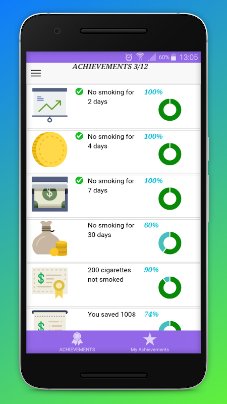 Quit smoking accompanies those who wish to quit smoking. With this app, you get personalized information from ex-smokers and follow the benefits of your daily stop.