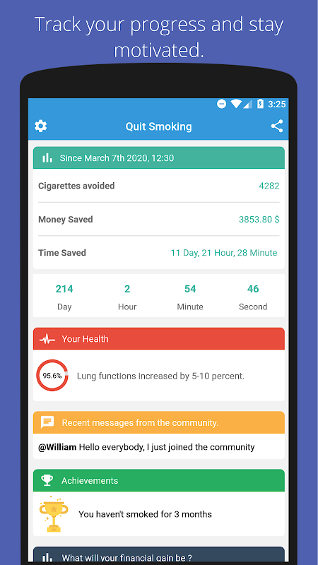 Quit Smoking is a quit smoking application inspired by the scientific researches of the World Health Organization (WHO) on smoking. Thanks to the quit smoking application, you will be able to professionally follow the health developments in your body after you quit smoking. You will be able to see how much you have earned by not smoking. You can see what kind of economic gain you can gain by not smoking in 1,5,10 years. You can achieve motivating achievements. We also have a community. Here you can chat, meet people from 6-7 different countries who want to quit smoking like you, and benefit from their experiences. All you have to do is choose your quit date and join this marathon.