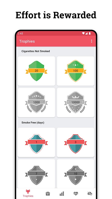 With Quit Tracker you can also see how much life you lost and how many cigarettes you smoked before quitting, but the you will also be able to see what type of rewards you can get if you stop smoking as well.