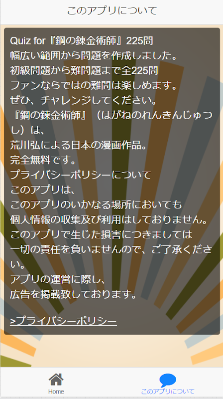 APKPure uses signature verification to ensure virus-free Quiz for『鋼の錬金術師』225問 APK downloads for you.