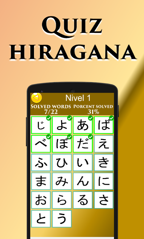 To complete each level of the game you must guess the Hiragana that appears on each screen. Use the characters that appear at the bottom of the screen and complete the Hiragana.