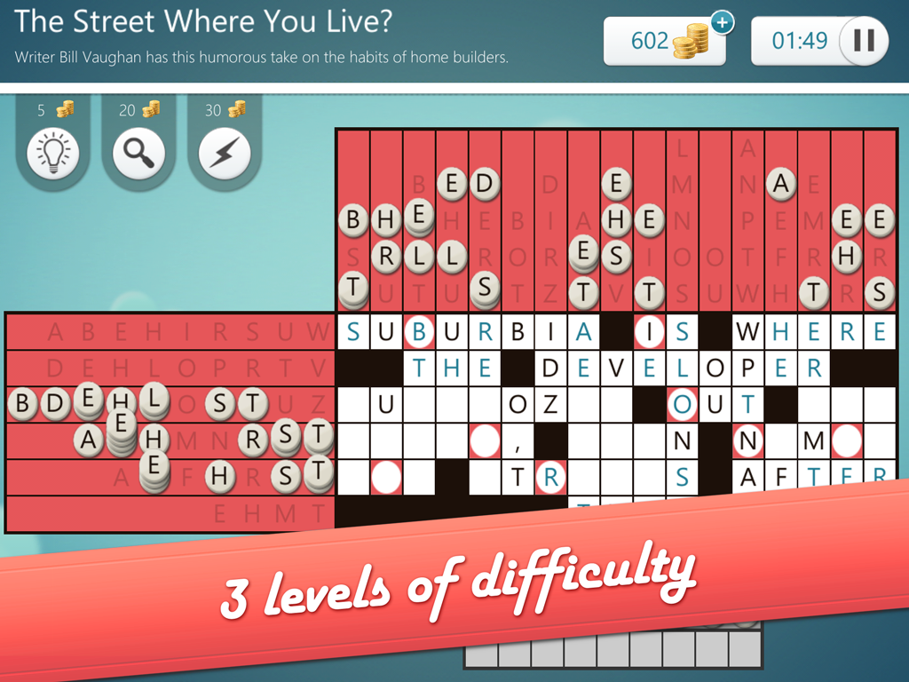 You’re given horizontal and vertical letter clues, and it’s up to you to arrange them to spell out the quote!