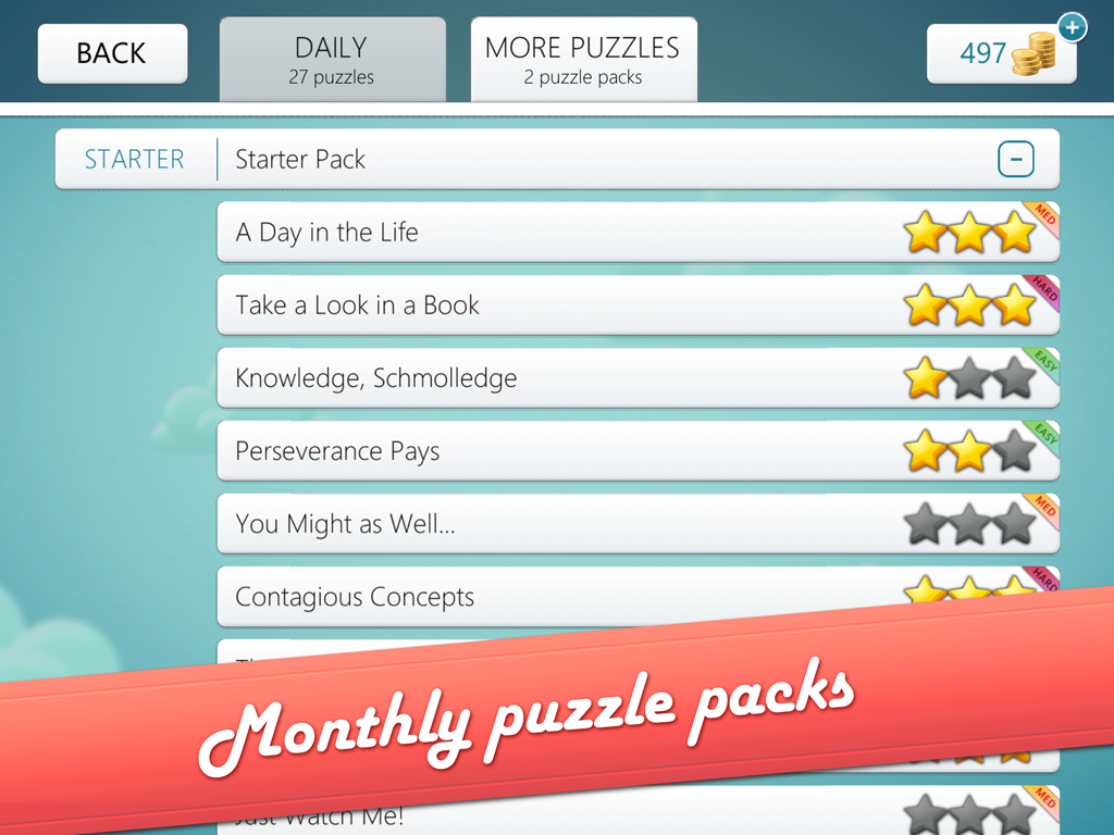 You’ll earn coins with every puzzle you solve, and you can use them to purchase more puzzles, theme packs, and power-ups.