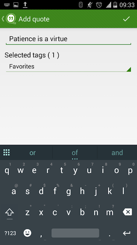 Think outside the box! Quotify is primarily a quotes application but can be used for basically anything that requires classification or tagging, it can be used as a task list manager, recipe ingredients, shopping list and many more, just download the app and EXPLORE NOW!