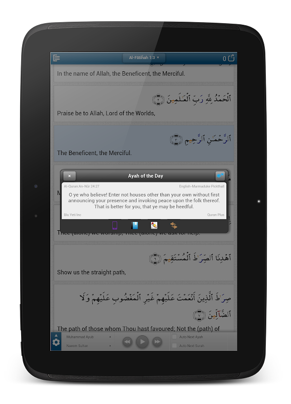 * Mix and match Arabic recitations with English Audio.