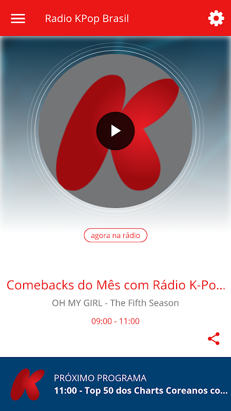 Aplicativo da Rádio K-POP Brasil. Instale nosso aplicativo para acompanhar as transmissões da rádio, ver imagens AO VIVO através de nosso estúdio e também entrar em contato conosco pedindo músicas e deixando recados. Você também pode checar a programação completa da nossa rádio, ou interagir através de nosso chat.