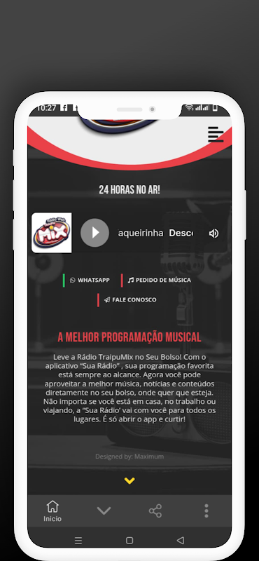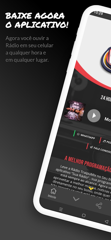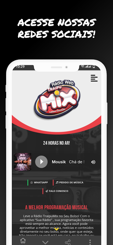 Enjoy the best music selection at any time with our web radio app! Listen to your favorite station 24 hours a day, make personalized song requests, check the full schedule and follow the status of your favorite program. Download now and immerse yourself in the unlimited musical experience!