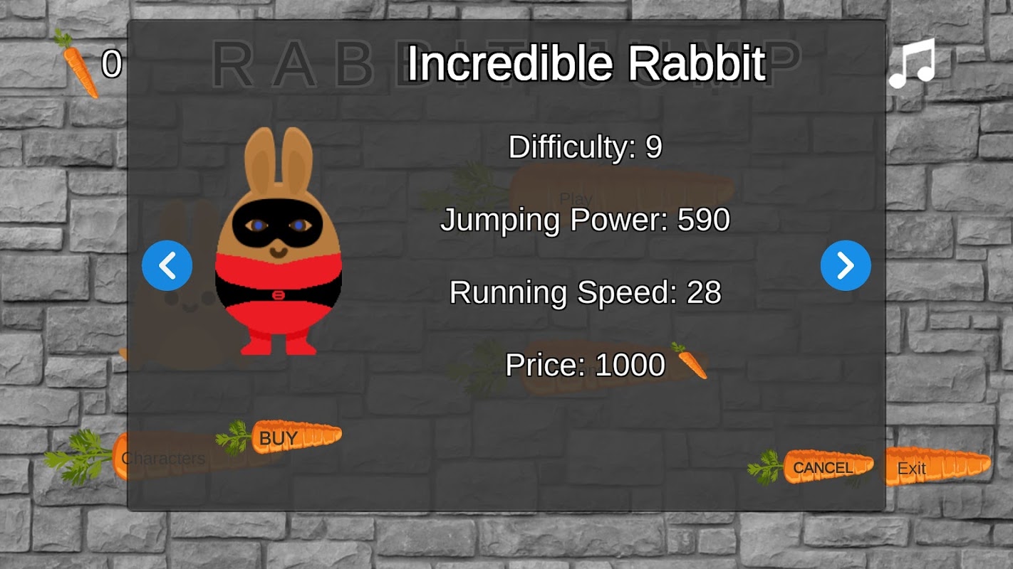 * Multiple character support with Little Rabbit, Grey Rabbit, MR. Rabbit, Super Rabbit, Incredible Rabbit and Bat Rabbit.