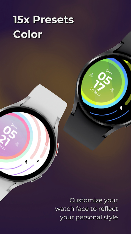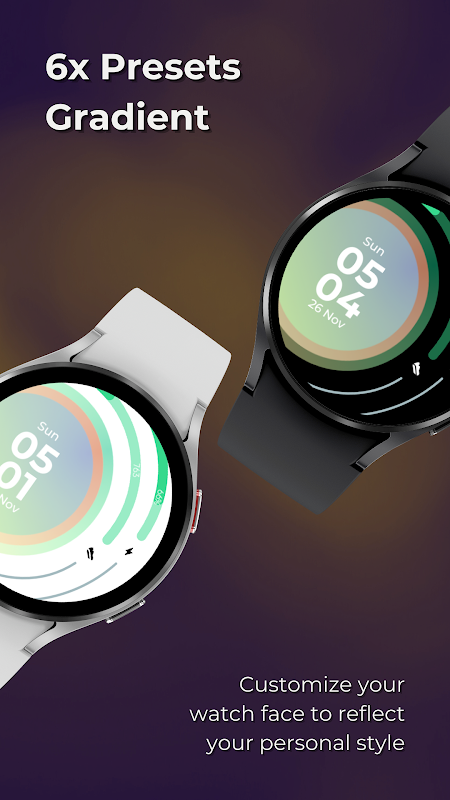 Introducing the Radiant Watch Face Design - a striking timepiece that combines elegance with functionality. This watch face design boasts a captivating circle gradient background color that adds a touch of modernity to your wrist.