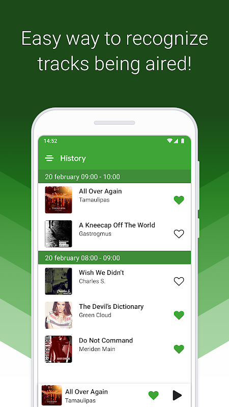 • Easily add tracks to your favourite by simply clicking the «heart» icon.