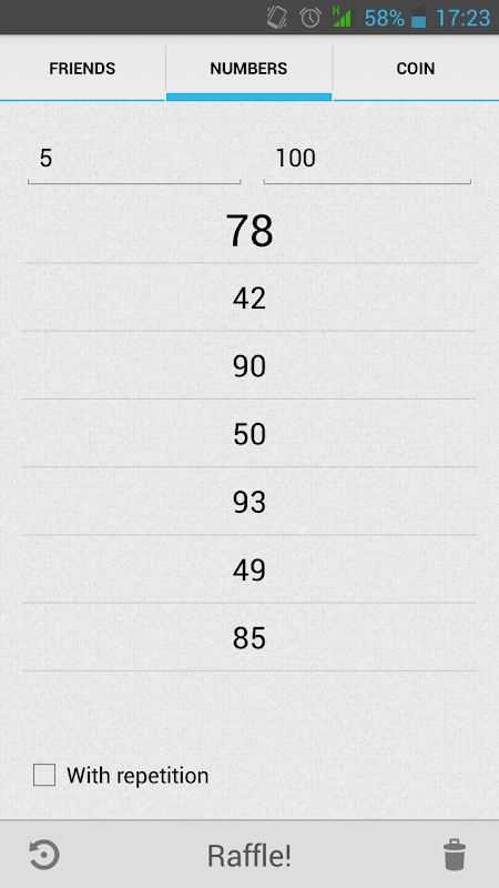 This app lets you make raffles with your friends, get random numbers within the desired range and flip coins.