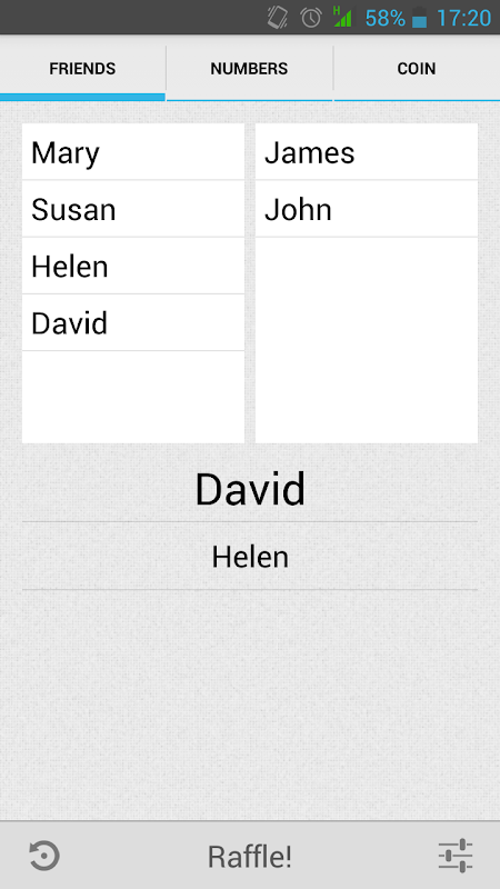 And if you just need to flip a coin, select COIN tab and Raffle!