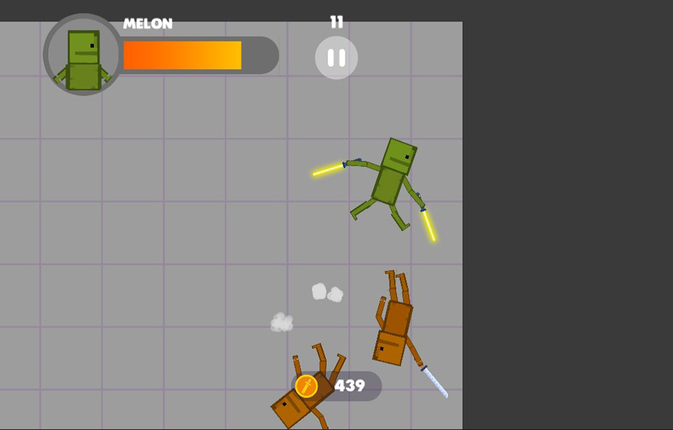 Ragdoll Melon Fight is an action-packed fighting game that challenges you to use your skills to defeat a series of opponents, each with their own unique powers. With a wide variety of punches and kicks at your disposal, you must navigate through challenging levels and emerge victorious. This sandbox ragdoll game allows you to play in a fun and playful playground environment, as you control your very own ragdoll melon hero.