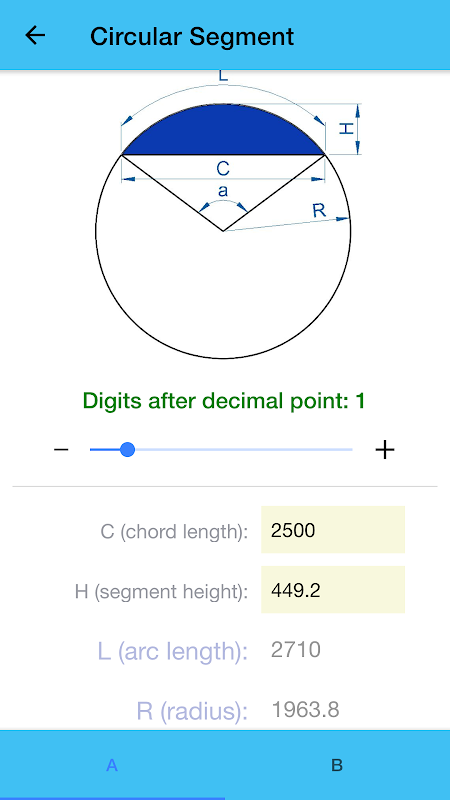 Circular Segment Calculator: with chord and chord height or chord and segment radius, we can calculate all data for the circle segment