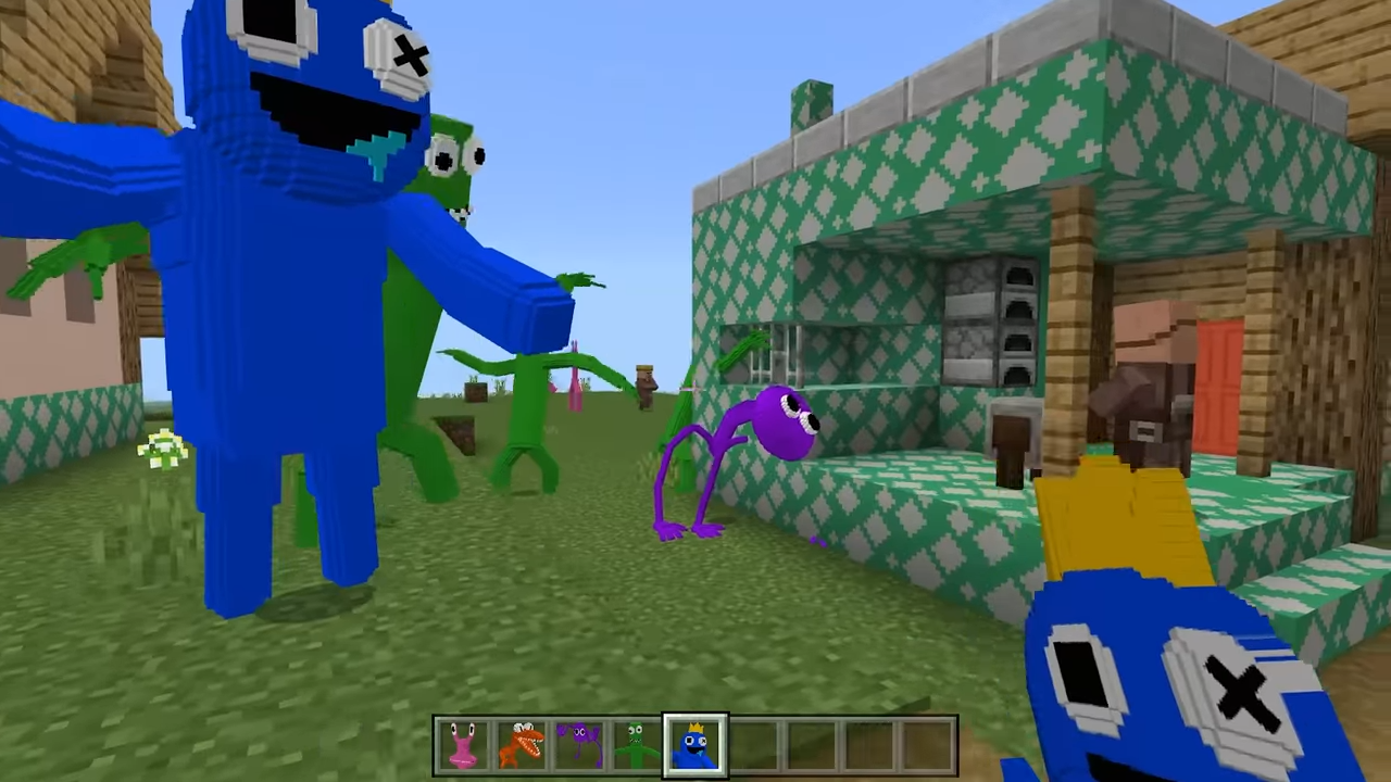 The Rainbow Friends want to play with you in Minecraft. Survive the monsters through and don't get caught by the monsters in this mod for Minecraft