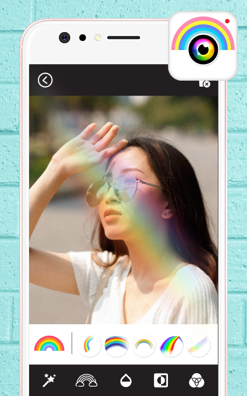 Rainbow-Overlay Sticker, Filter Selfie Camera is a camera & photo editor app which brought pretty rainbow and shadow stickers & color filters to decorate your life moments.