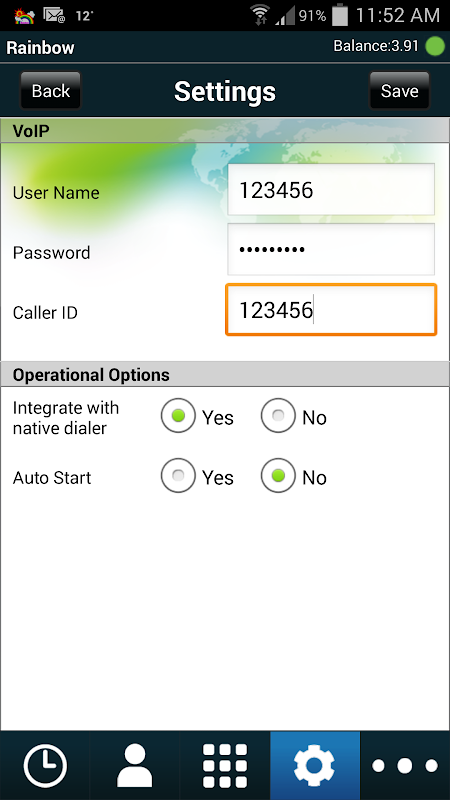 Step 3: Tap ‘Save’ and the dialer will be registered and ready to make calls.