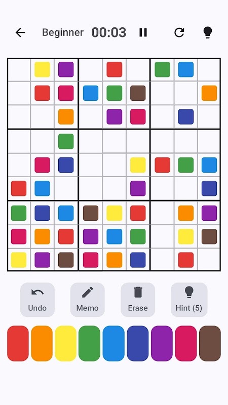Convenient Memo Function: Record possible candidate colors as small color circles in each cell, allowing you to systematically solve even complex puzzles.