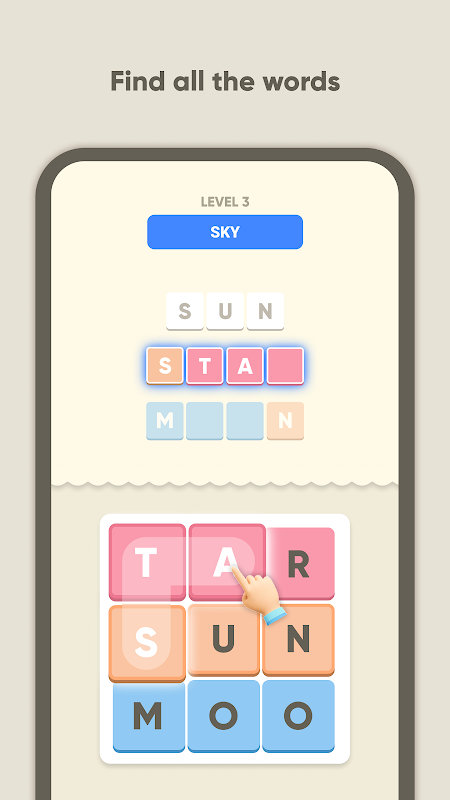 Each level presents a grid of colorful letters. Your goal? Find and arrange the correct words by spotting patterns in colors and letters. Start with easy puzzles and progress to more complex challenges that will truly test your vocabulary and logic skills!
