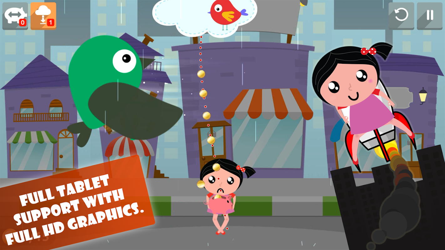 The twist of Raining coins on rainy days instead of water, gold coins drop from the sky and Eve has to collect the maximum coins to live the life. With the coins, you can buy trampoline games, prizes, dresses and helpful apps for Eve and make her happy. A perfect cute game to play and explore. Get the toys and become the trampoline master. Get the prize. The designs of Raining coins is super cute and attractive. The HD display and the soothing background music enhances the joy of playing the game. As soon as the weather changes the backgrounds and the music changes accordingly and this is something which takes you to the next level of entertainment. There are like 80 rounds in the game, each round with new excitement, fun and adventure.