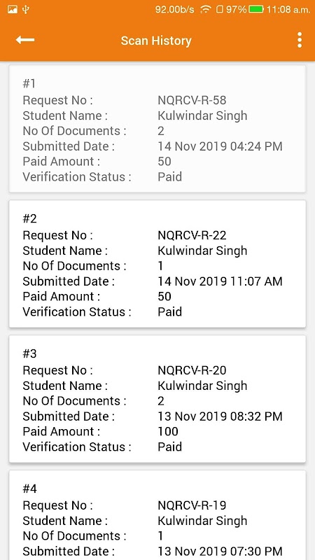 Once registered, the application's scan feature over the physical document's QR code helps fetch the original document.
