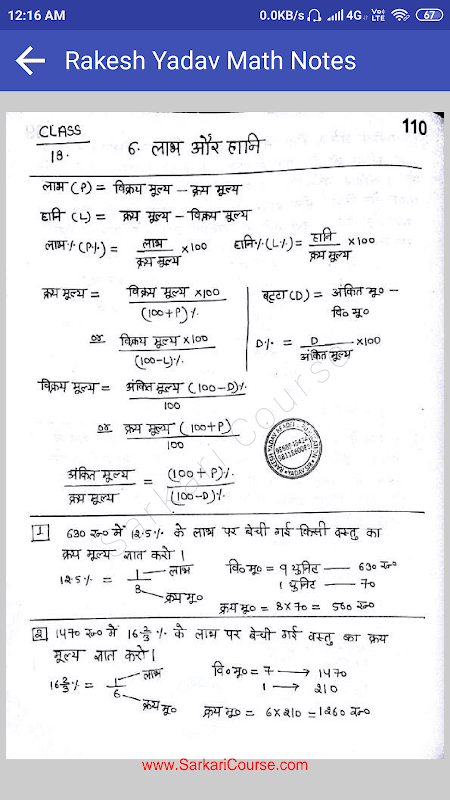 Offline Rakesh Yadav Class Notes of Maths in Hindi for SSC, Bank, Railway etc.