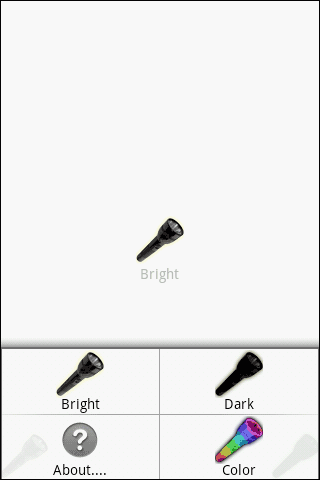 The very first flashlight that worked with the new Android 1.5 "Cupcake". No fancy bells, just a flashlight with a selection of colors and 2 levels of brightness.