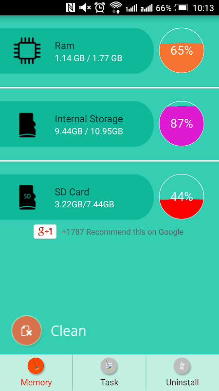 RAM BoosterThe best application to speed CPU up to 70%, optimize android system, clean temporary memory, clean RAM and cache, clean SD card, remove junk file, speed game and browser up, close application running under background, increase starting speed and boost internet connection speed, boost loading file and SD card. With RAM Booster, you can optimize your android devices by several simple steps.