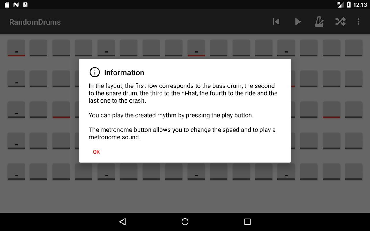 Random Drums is a drum rhythm machine where you can create your own rhythms and get some of the, randomly. It also includes a metronome to help you keep up with the rhythms created by you. And it is absolutely free!
