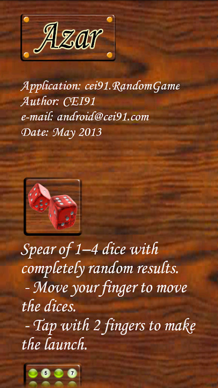 AZAR is an application that contains four games based in one way or another on chance.