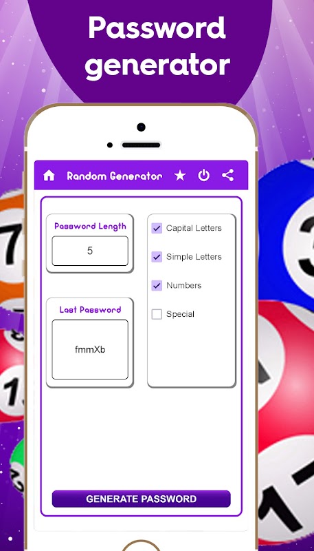 🎲 Choose whether you want capitals, simples, numbers, or special characters