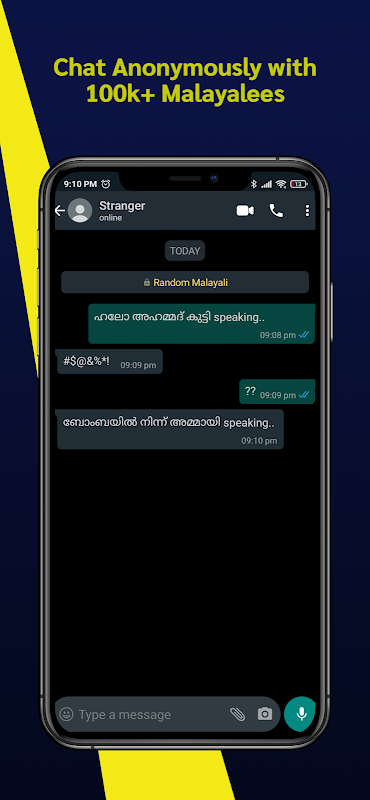 This is a Malayalam chat app in which you can chat with complete strangers without revealing your identity.