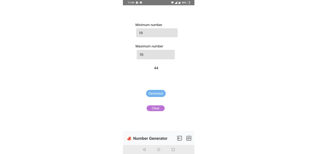 This app generates random numbers from the minimum range and maximum range given by the user