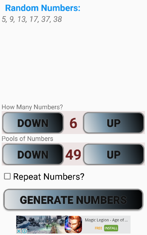 This app will ease some of daily tasks which require random number generation such as playing Lotto.