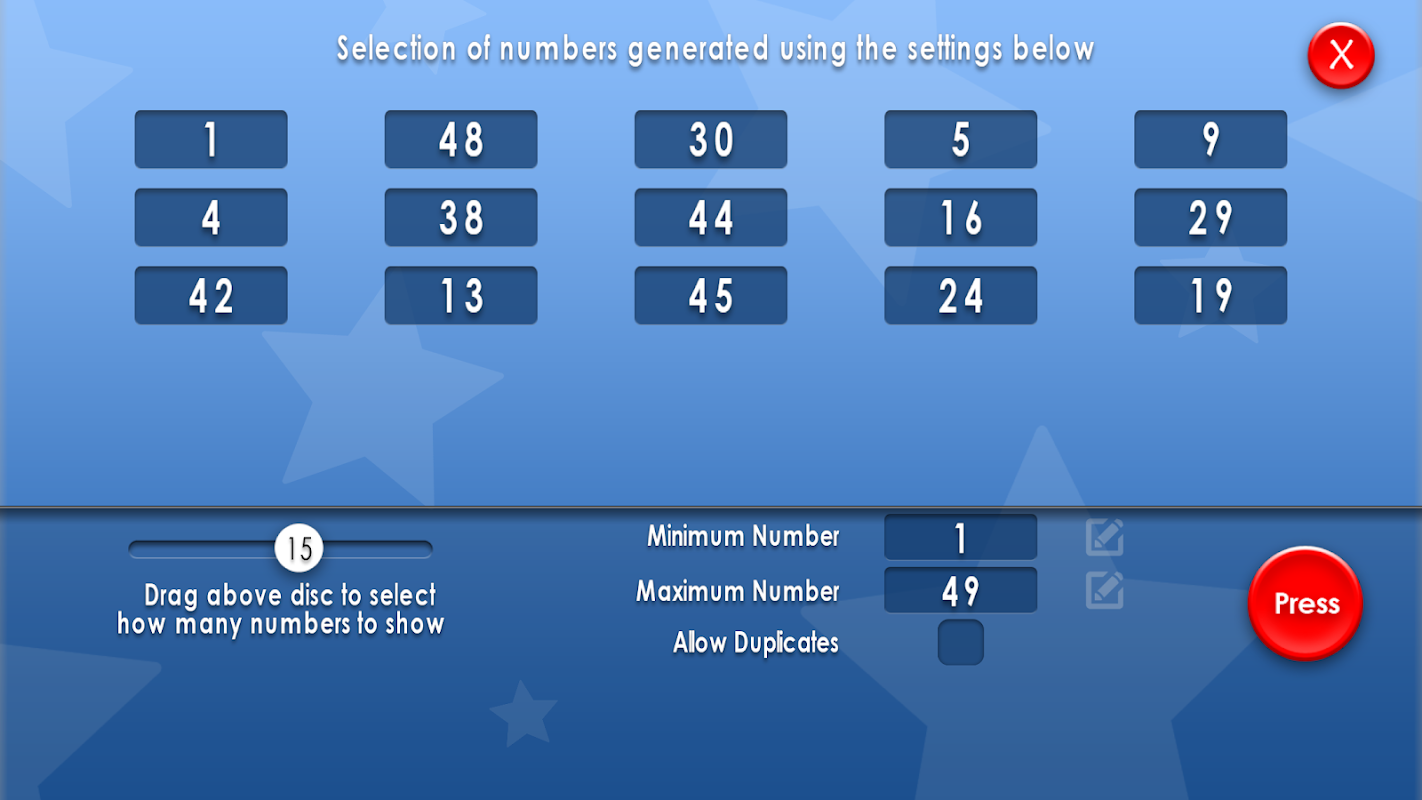 Random Number Generator, Use for Tombola, Keno, Lottery and Lotto