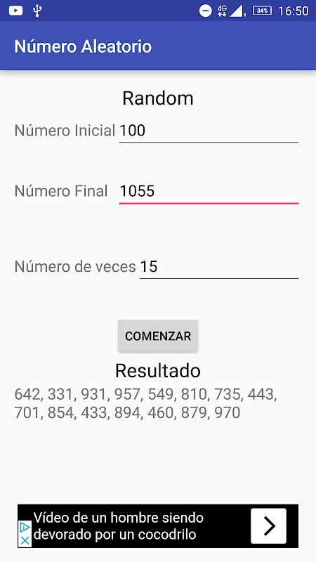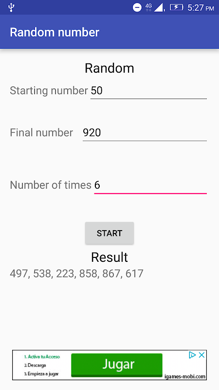 This application is a simple application in which you put a range of numbers and gives you x random numbers within the set range.