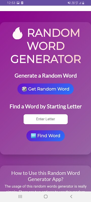 Features of this Random Words Generator App: