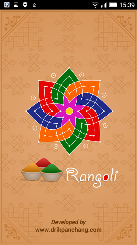 Rangoli Designs for numerous Hindu festivals. This app is collection of Diwali Rangoli, Dot Rangoli, Ganesha Rangoli, Bengali Rangoli, Lakshmi Pada Rangoli, Hridaya Kamalam Rangoli, Sankranti Rangoli, Ratham Rangoli, Lord Shiva Rangoli, Nag Panchami Rangoli, Saraswati Rangoli, Tulasi Rangoli, Navagraha Rangoli and Gudi Padwa Rangoli.