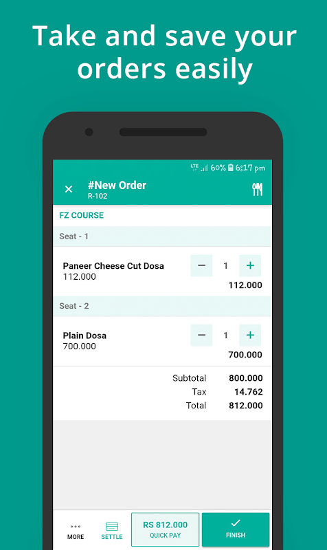 The restaurant order taking app lets you take in-house orders in your restaurant