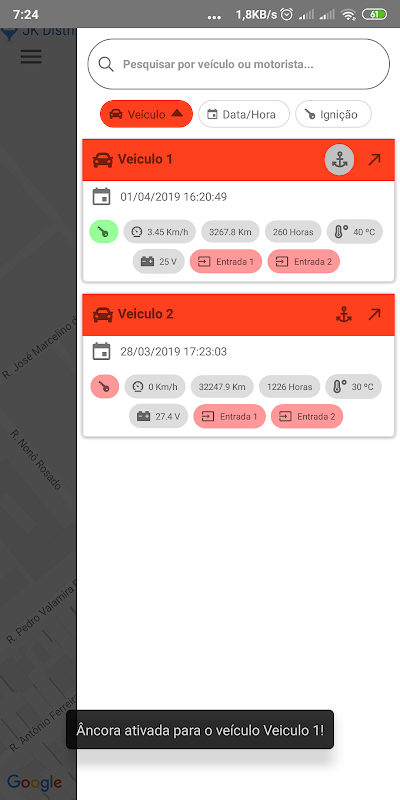 App for real-time vehicle tracking of Rastreauto customers.