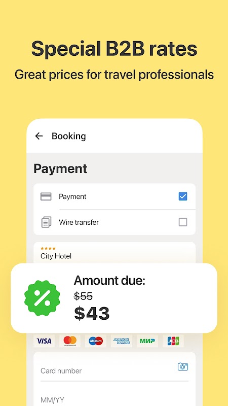 Puedes escoger entre más de 1.300.000 hoteles, pensiones, hostales y apartamentos con precios fantásticos para clientes corporativos y agencias de viajes. Trabajamos con los principales proveedores de inventario y con decenas de miles de hoteles directamente. Esto nos permite ofrecerte las mejores tarifas y ahorrarte dinero.