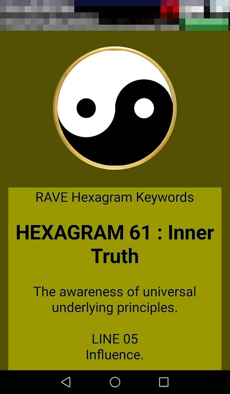A simple, easy and fun way to learn/memorise RAVE Hexagrams' keynotes and 384 lines' keywords. This APP will randomly show a RAVE Hexagram keynote and a line keyword each click. You can re-start any time to show a new Hexagram keynote and keyword.