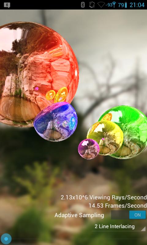 -Acceleration structures, interlacing, native implementation and multi-threading make this a very fast ray tracer. You can interact with the spheres during the render: something that is not possible with any other ray tracer currently on the Android Play Store.