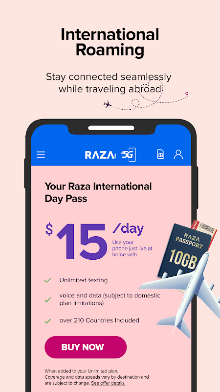 Traveling? Stay worry-free with our affordable international roaming options. From calls to texts and data, Raza Wireless ensures you stay connected globally—without the sky-high costs.