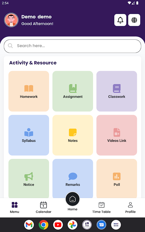 This application serves as a valuable tool for parents or students to receive daily updates on activities, including attendance, homework, assignment, notice, timetable and more.