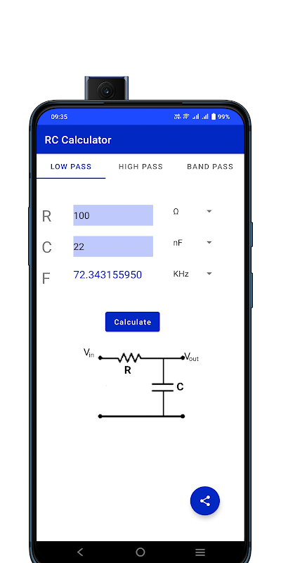 RC Low Pass , High Pass and Band Pass Filter Calculator