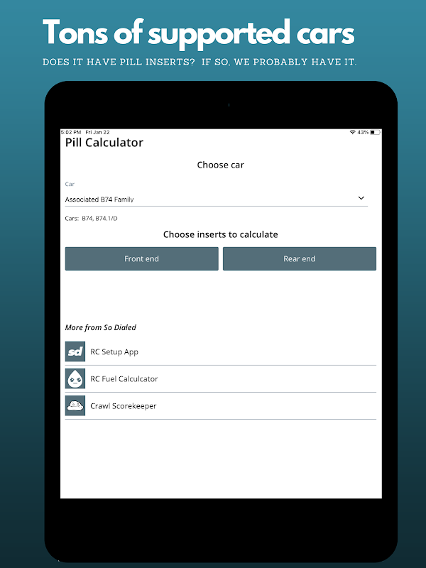 IMPORTANT: This app is no longer supported! To get the latest version and updates for new cars, please download RC Pit Calc: