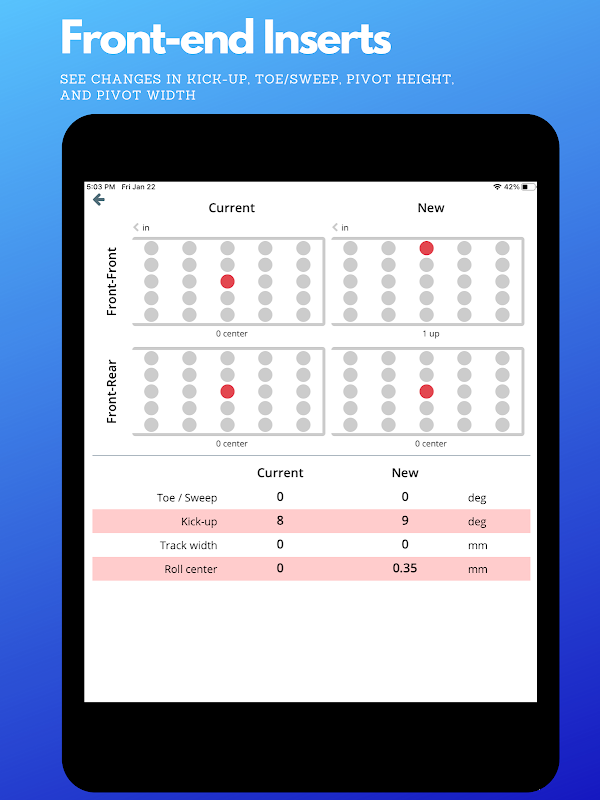 Figuring out your toe, anti-squat, roll center, and track width on cars that use pill inserts is a pain...no longer! Just use the So Dialed RC Pill Insert Calculator, and you can easily see exactly what suspension geometry you'll get from any arrangement of pill inserts. Works well with the So Dialed RC Setup App (https://www.sodialed.com/apps/so-dialed-rc-setup-app).