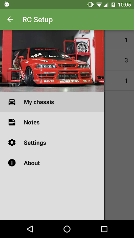 - on the "Notes" page you can add notes with useful information about rc car settings and behavior.