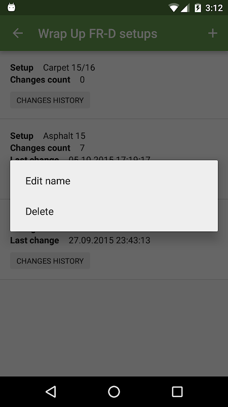 - if you long press setup item in the list on the setups page you can see its changes history, change its name or delete it;